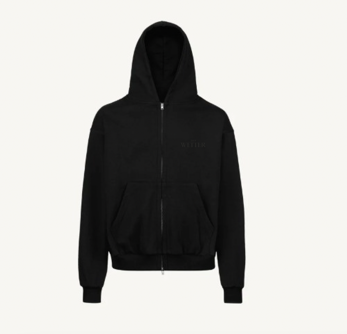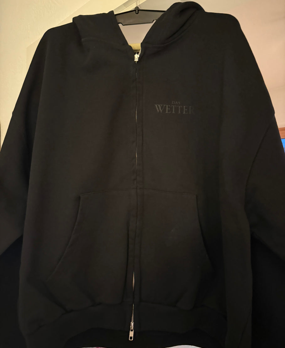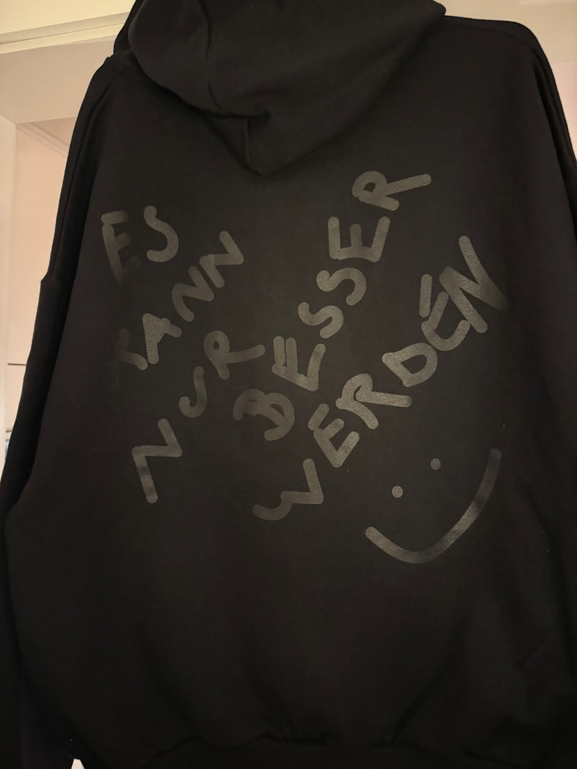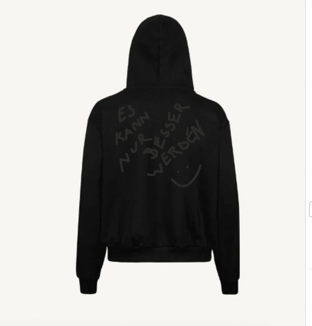 Unsere neue Merch-Kollektion besteht aus qualitativ luxuriösen Basics – made in Portugal. So wie diese Zipped Hoodie-Jacke mit einem kleinen schwarzen Wetter-Logo-Print auf dem Herzen und einem großen »Es kann nur besser werden«-Rücken-Print (ebenfalls in schwarz).